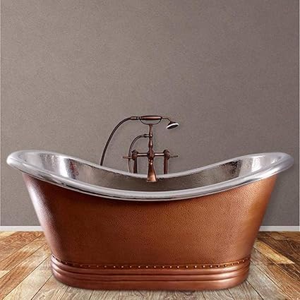 Hammered Copper Double Slipper Bathtub With Nickel Interior